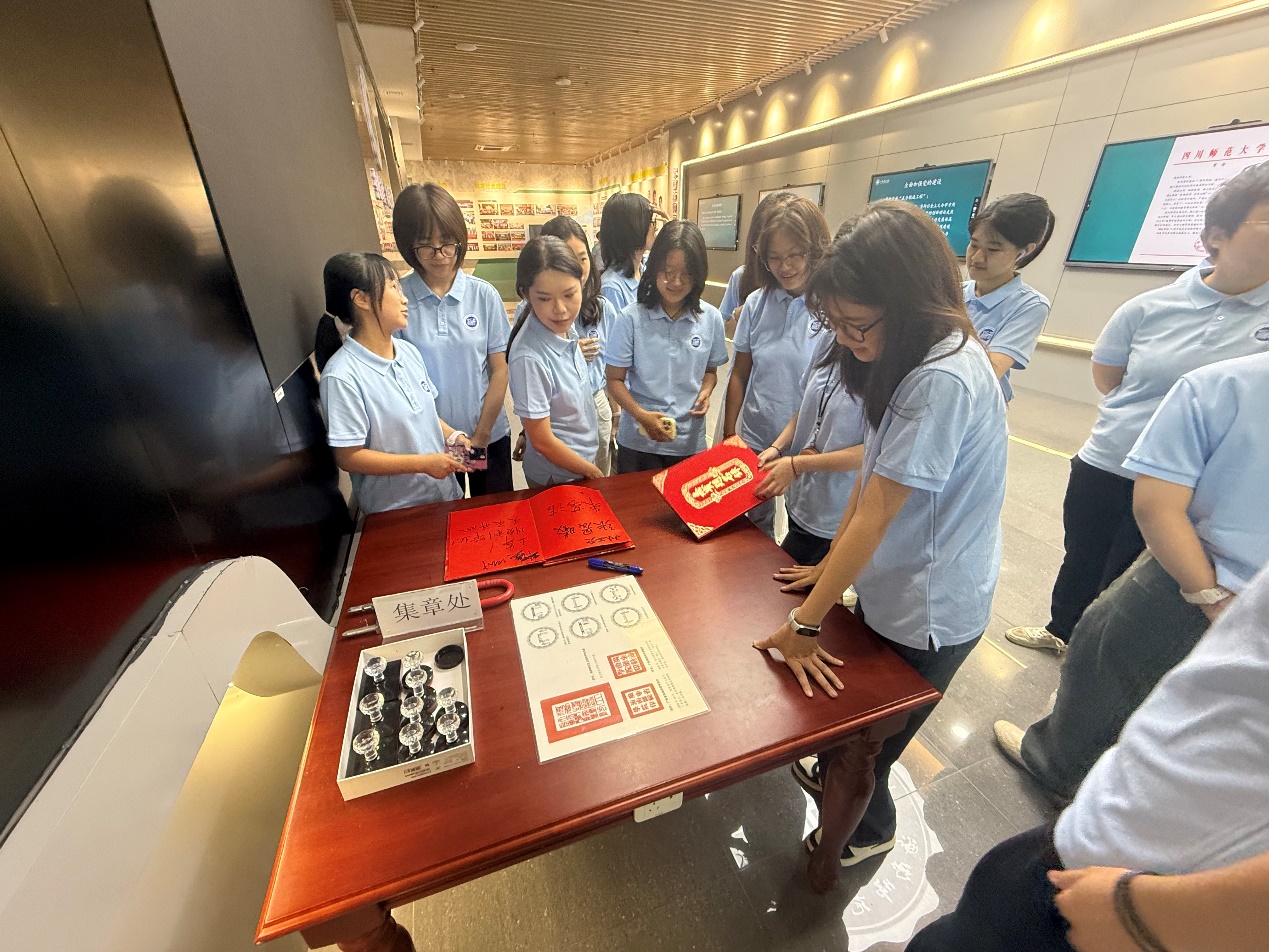 “这种紧跟时代脉搏,勇于开拓进取的历程,正是‘求是创新’校训的最佳体现。”杜博洋讲解道,“求是,是尊重教育规律,追求科学真理;创新,是敢于突破陈规,勇立时代潮头。”这一段校史引发了外语学子们的深深共鸣。他们认识到,在外语学习和跨文化研究领域,同样需要这种“求是创新”的精神——既要扎实掌握语言本体与对象国文化之“是”,也要勇于探索新的研究视角、新的传播方式,以应对全球化与数字时代带来的新挑战。
