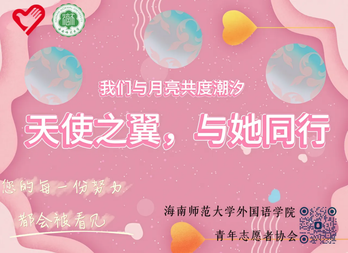 生活中,总有一些温暖不期而至,总有希望在心底生生不息。但在当下,女性的月经生理问题有时仍被视为难以言说的禁忌。从初潮来临的那一刻起,女孩们往往就承受着来自社会的种种压力,不知不觉把“月经”一词当成要隐藏、不能公开谈论的事。拒绝月经羞耻,需要你我的共同努力。我们每个人都可以付出实际行动,向有需要的女性提供帮助,让社会充满温暖。外国语学院青年志愿者协会始终秉持“激发‘她智慧’,凝聚‘她力量’”的理念,从女性视角出发,积极作为,开展“天使之翼,与她同行”关爱女性志愿服务项目线下活动——“我们与月亮共度潮汐”。活动通过捐赠卫生巾,解决部分女性面临的“月经贫困”问题;同时开展月经知识科普,打破大众对月经的误解和偏见,消除 “月经羞耻”,为女性群体的权益与健康积极发声。
