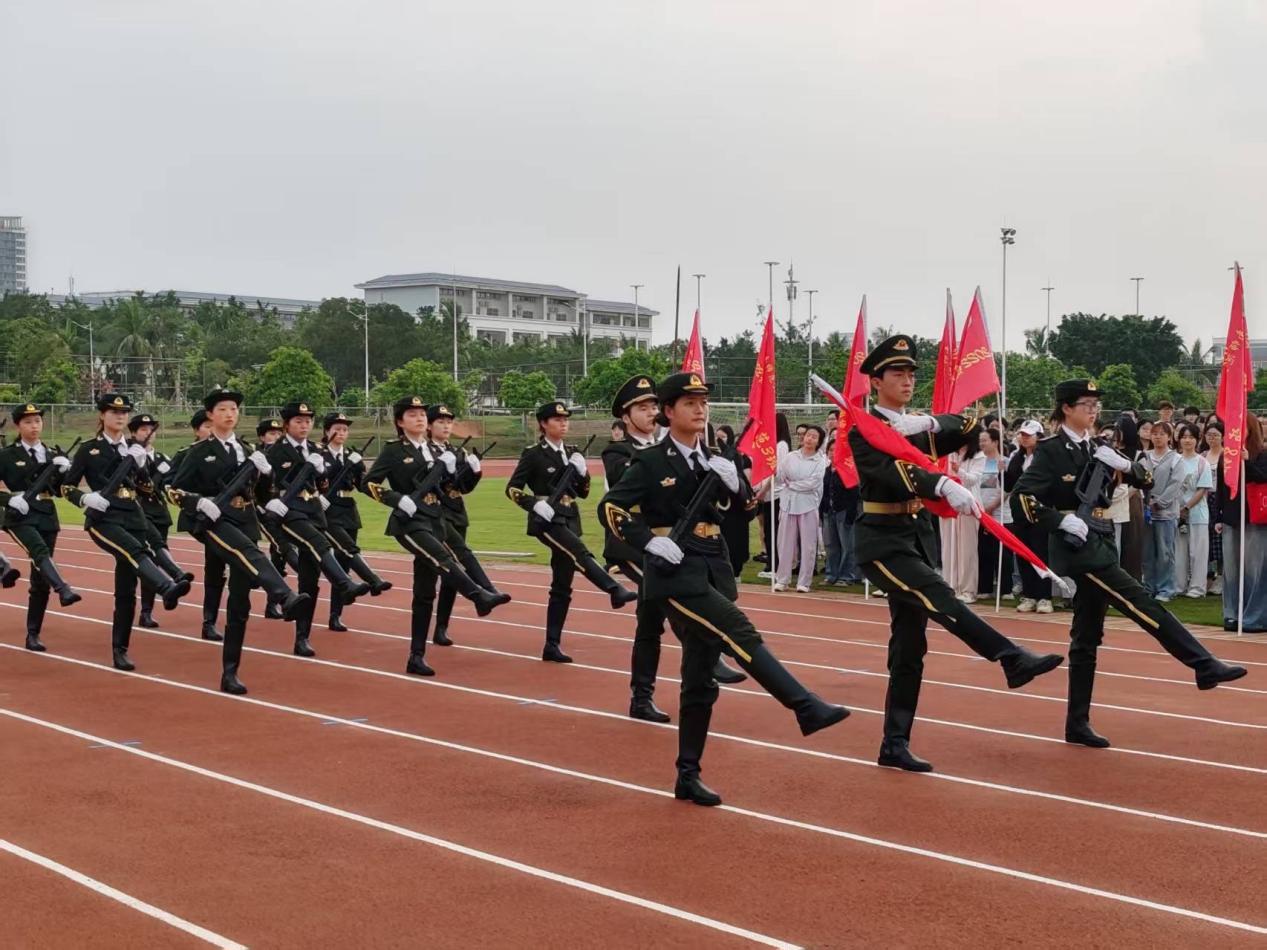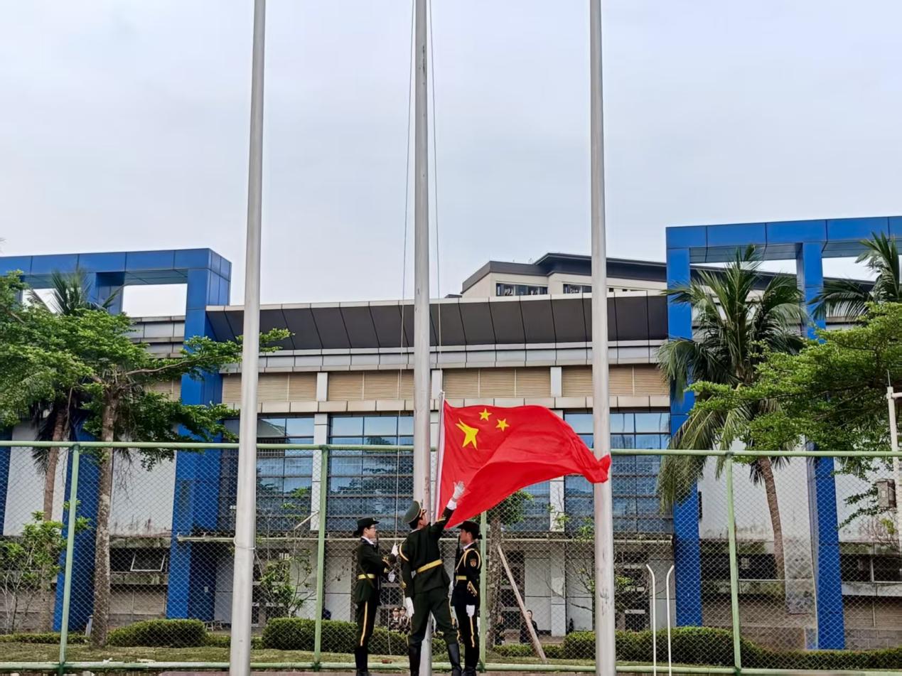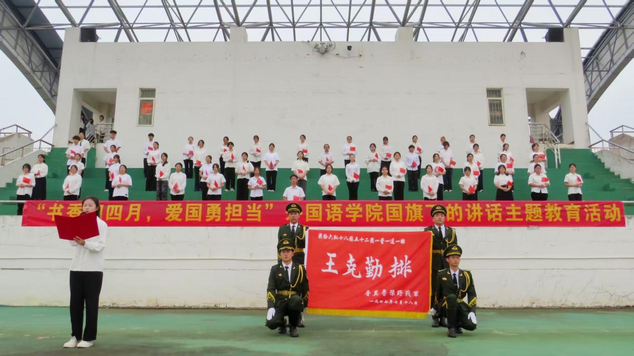 活动第一项,升国旗,奏唱国歌。国旗护卫队迈着整齐的步伐,以昂扬的风貌走向升旗台。伴随着庄严的音乐声,外院全体师生向国旗行注目礼,表达对祖国的崇高敬意。