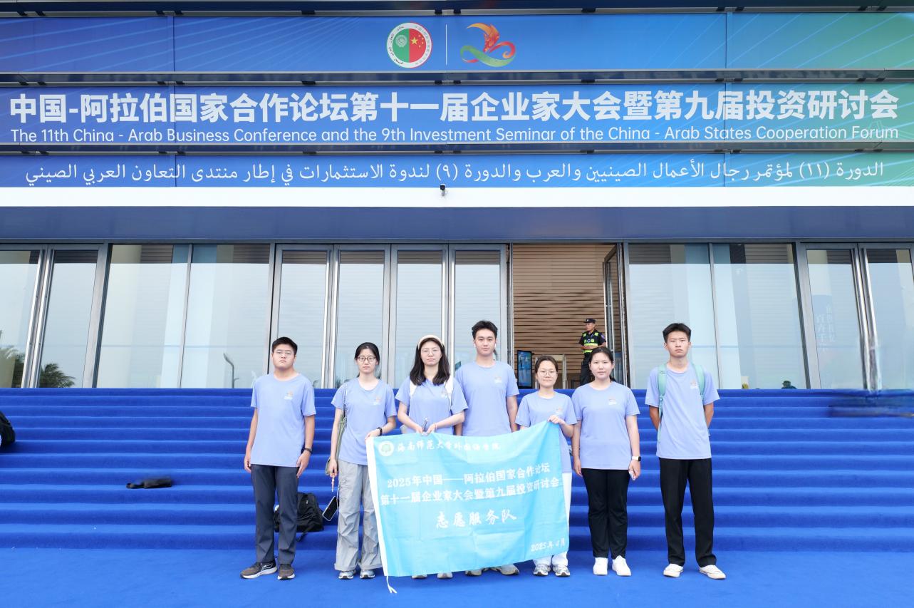 2025年4月27日至30日,中国-阿拉伯国家合作论坛第十一届企业家大会暨第九届投资研讨会在海南盛大启幕。为保障会议高效有序开展,海南师范大学外国语学院的志愿者们以专业严谨的态度应对各类沟通需求,用真诚细致的服务传递青春温度,全身心投入到志愿服务工作中。他们用青春的热忱,为这场国际盛会注入温暖力量,书写属于海师外院学子的奋斗篇章。