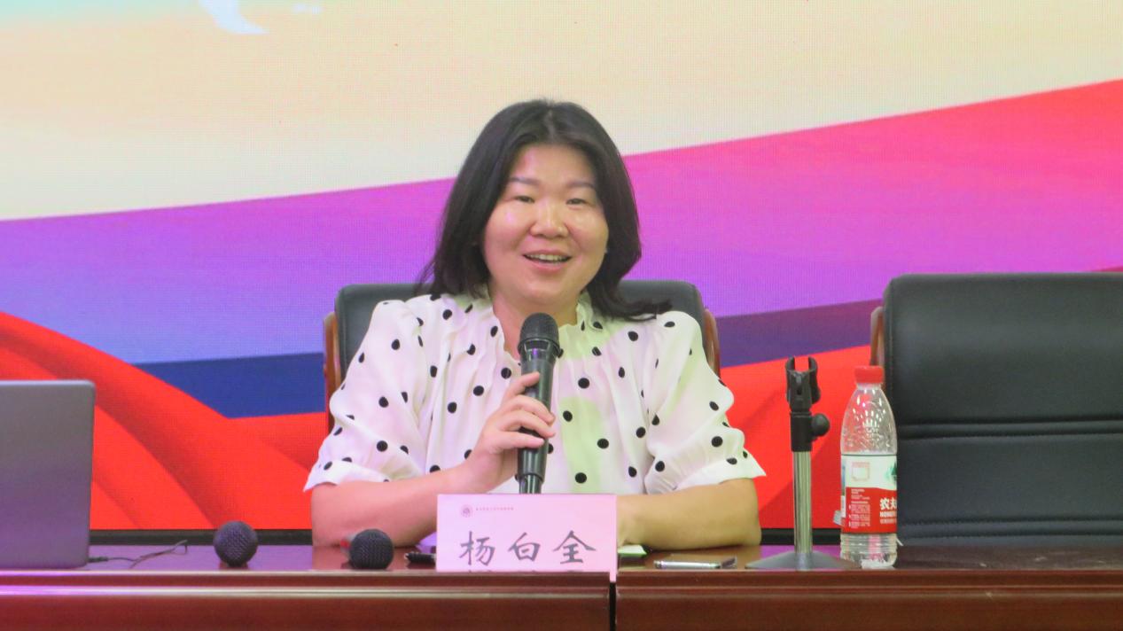 随后,杨白全副书记强调师范专业认证对学院发展的重要性,要求所有师生积极应对,做好充足准备迎接专家入校。杨书记从精神面貌、课堂纪律、文明礼仪、学生的发展状态方面对全体同学提出一系列可操作性要求。而后,她从思想价值引领、专业知识学习、国际赛会志愿服务、暑期社会实践和其他志愿服务活动、生涯规划及就业指导、丰富多彩的第二课堂和校园文化活动六个方面,对学生的全面发展作出指导。杨书记强调每位学生都要做好充分准备,熟悉特色活动,了解院情校史,展现外院学子高水平综合素质。