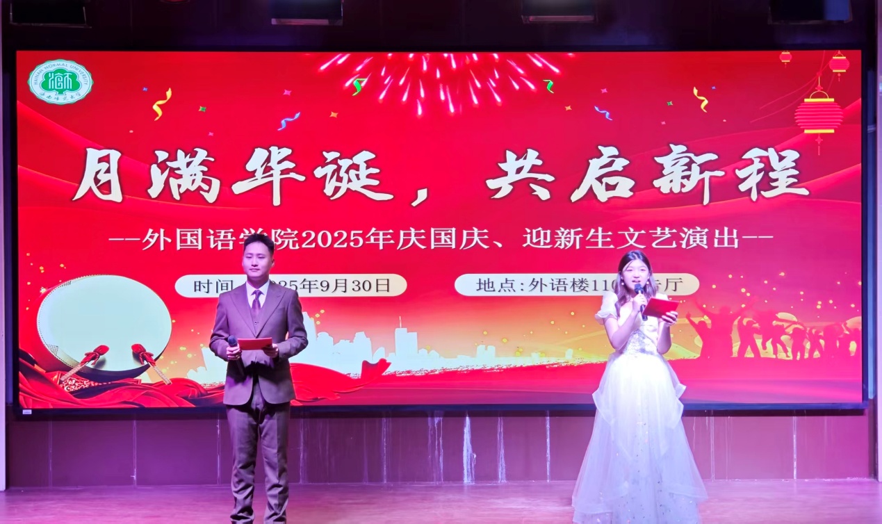 2025年9月30日15时,海南师范大学外国语学院“月满华诞,共启新程”国庆、迎新生联会于外语楼110报告厅隆重举行。