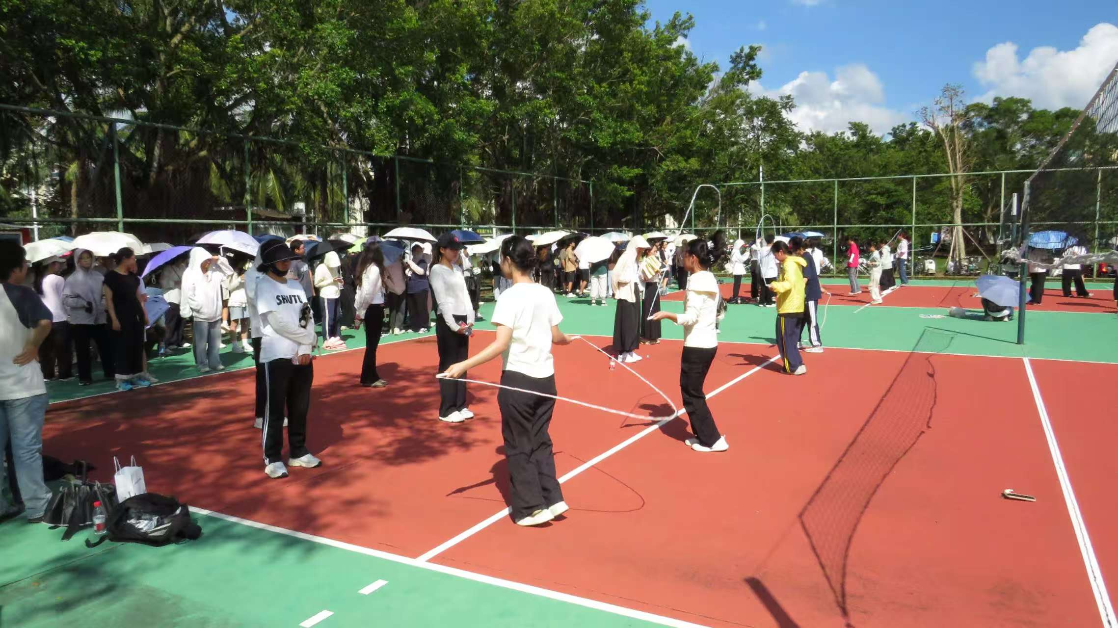 2025年10月14日14时30分,海南师范大学外国语学院第八届运动会之跳绳比赛于桂林洋校区椰林大道旁的排球场顺利拉开帷幕。本次比赛采用计时赛的模式,共涵盖了7个比赛项目:30秒女子跳绳、30秒男子跳绳、1分钟女子跳绳、1分钟男子跳绳、3分钟女子跳绳、3分钟男子跳绳和团体混合跳绳。