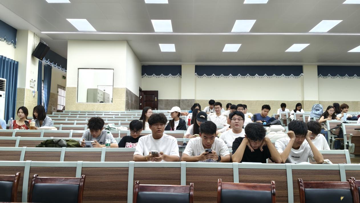 候场室内,同学们或低头专注于准备面试材料,或轻靠座椅调整状态,神情里带着些许对面试的忐忑与对未知的思索,安静的氛围中弥漫着一丝紧张的气息;面试室外的走廊上,大家有序列队,有的整理着衣着,有的在心里默默演练,眼神中既有对机会的期待,又藏着一丝即将登场的不安,每个人都在以自己的方式为即将到来的面试做着最后的准备。