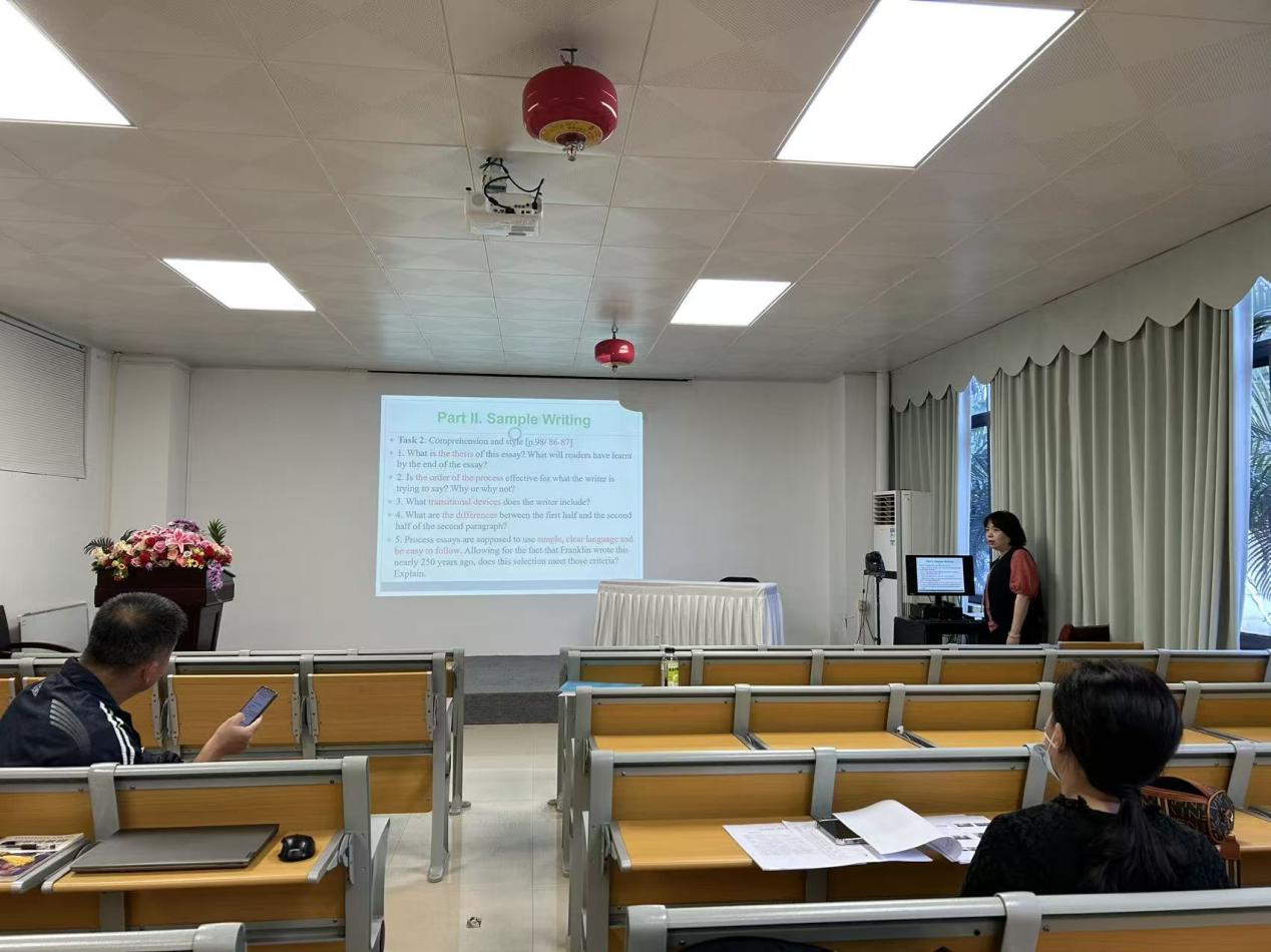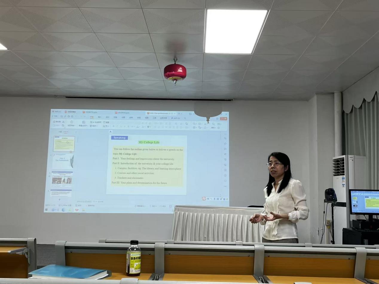 本次活动聚焦《综合英语(一)》《英语视听说(一)》《英语写作(二)》等四门专业核心课程。在磨课环节,任课教师首先阐述授课教学目标,随后进行无生模拟授课。旁听教师与授课教师围绕教学目标、教学内容、方法设计及评价方式等关键维度,展开了深入而热烈的研讨。