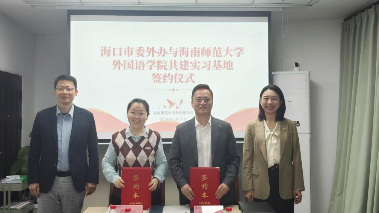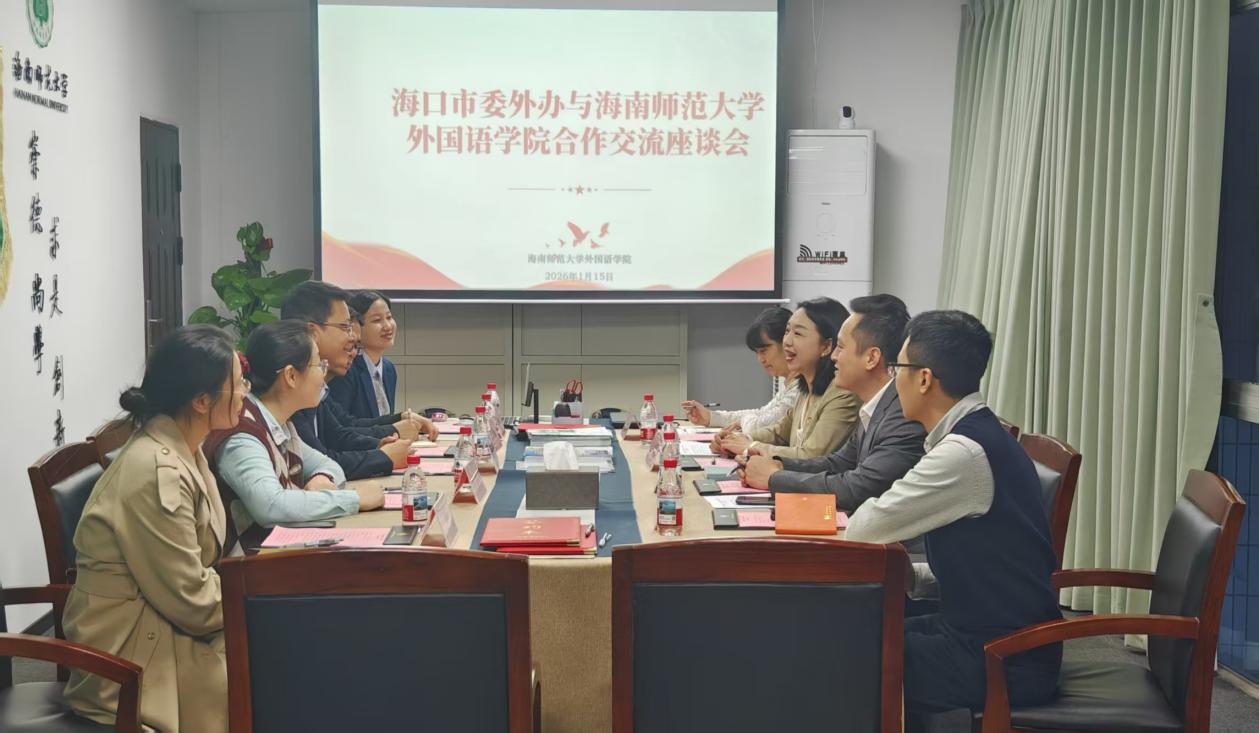 2026年1月15日上午,中共海口市委外事工作委员会办公室(以下简称 “海口市委外办”)与海南师范大学外国语学院合作交流座谈会暨校外实习基地签约仪式在海南师范大学龙昆南校区实验楼南盟会议室顺利举行。
