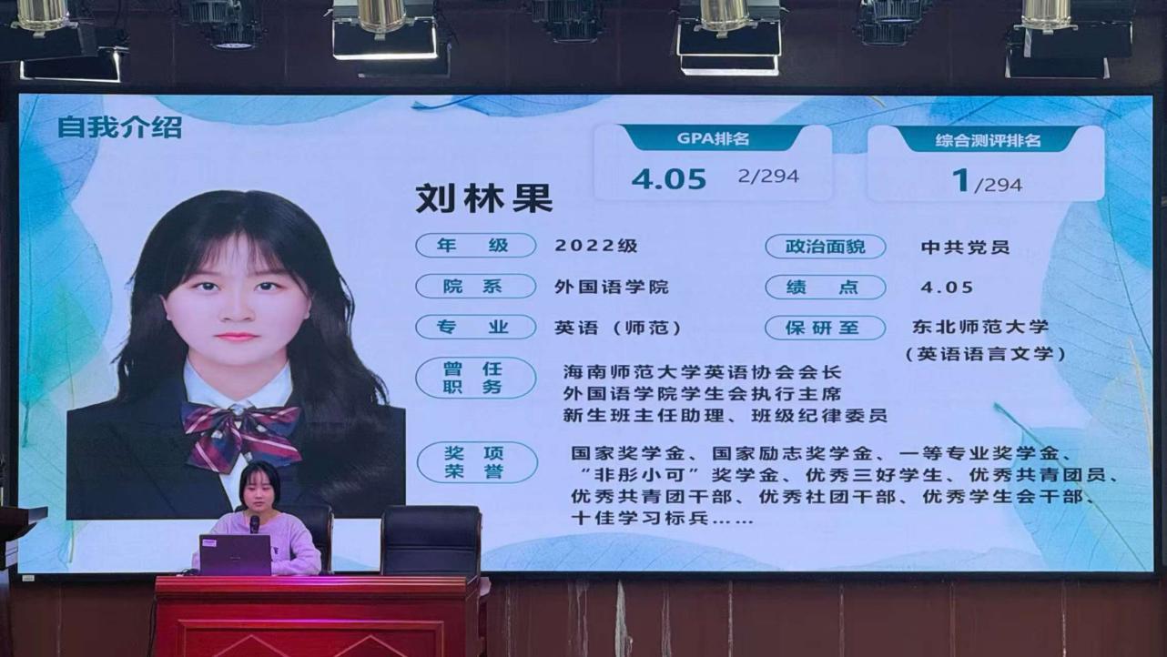 刘林果结合自身英语学习经历,分享了零碎时间背单词、精听练听力等英语学习方法。针对学业规划,她建议大二学生提前备战专四考试,注重绩点提升;大三明确考研、考公或就业方向,尽早准备;就业同学需培养“简历意识”,积累专业相关实践经历;保研同学要关注课程学分占比与综合测评排名,把握学院保研名额机会。
